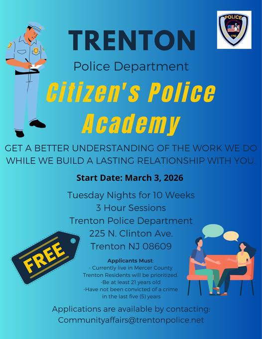 Applications are available by emailing: Communityaffairs@trentonpolice.net