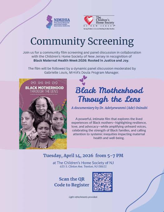 Join New Jersey Maternal and Infant Health Innovation Authority for a community film screening in recognition of #BlackMaternalHealthWeek.