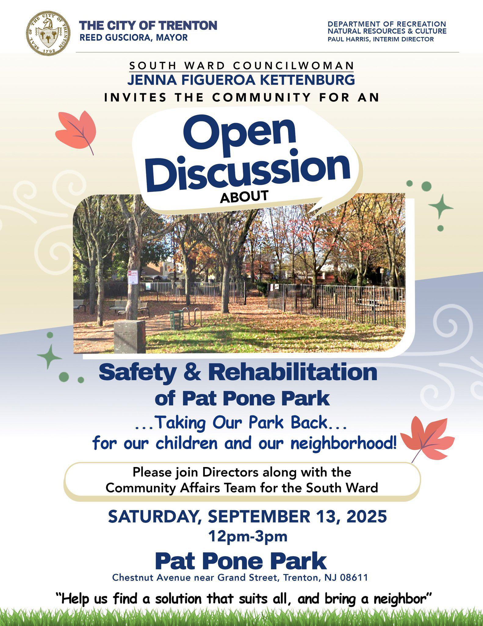 Pat Pone Park - Open Discussion about Safety and Rehabilitation