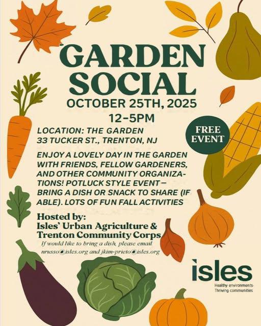Mark your calendars for Saturday, October 25th from 12-5PM at The Garden (33 Tucker St., Trenton, NJ) for a lovely afternoon celebrating community, gardening, and the fall harvest season!