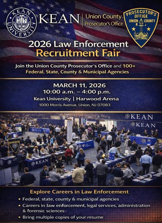 NJOHSP will be at the Union County Prosecutor's Office Law Enforcement Recruitment Fair on March 11, 10 AM–4 PM at Harwood Arena, Kean University. Meet our team and learn how our mission strengthens a safe, secure, and resilient New Jersey—and how you can be part of that work.